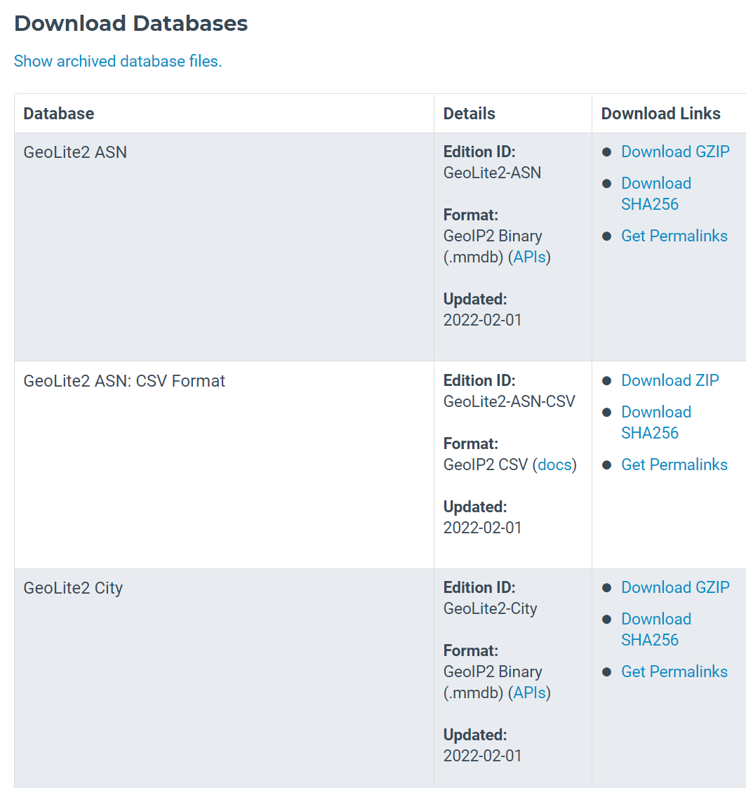 - https://dev.maxmind.com/geoip/geolite2-free-geolocation-data?lang=en 사이트에 가입해서 geoip data를 확보한다.
